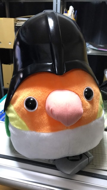 我が家のトリくんに被せてみました。踏んでいるのは3Dプリントしたタバコケースです。