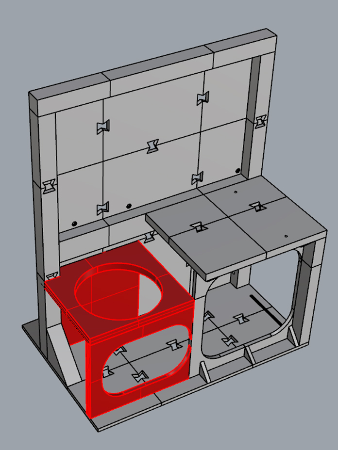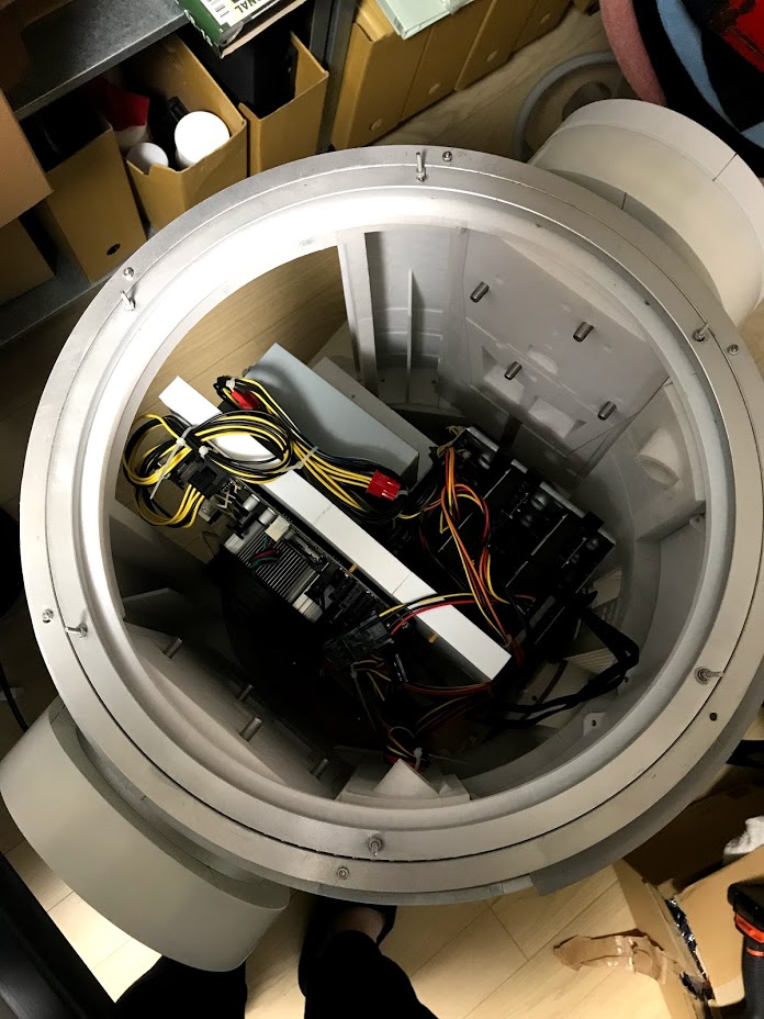 そして上の写真は、PC組み込みパーツを仮組したところです。まだPCパーツがついていないので、いまいち分かりにくいと思いますが設計変更を行ったバージョン2です。